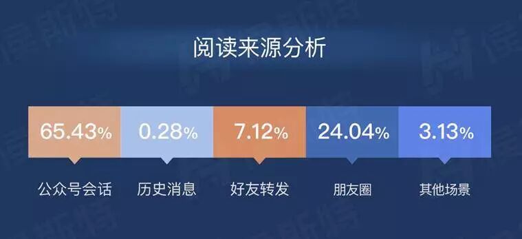 诚然,微信公众号阅读还来源于朋友圈、好友分享等等,但数据显示微信公众号65.43%的阅读量来自于公众号。因此,新的信息流模式反而并不会对低频长尾的公众号有本质的流量分配改观。